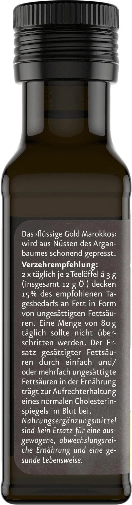 Für dieses reine Arganöl werden marokkanische Argannüsse geröstet und schonend kaltgepresst. Das „flüssige Gold Marokkos“ überzeugt mit seinem intensiven und nussigen Gesschmack.