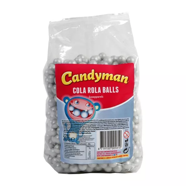 Zilverkleurige colaballen die eruit zien als kogels.Inhoud verpakking 2000 gram.