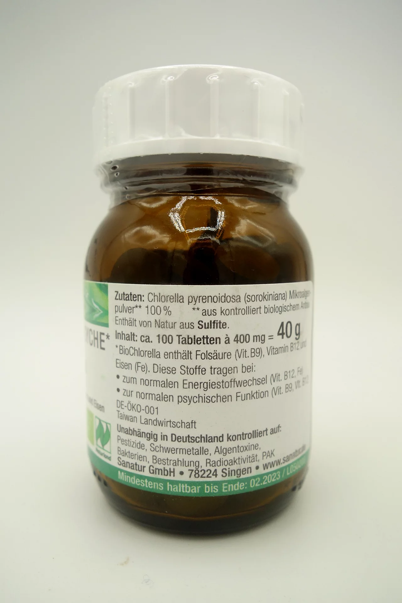 Bio Nahrungsergänzungsmittel mit Vitaminen und Eisen. Chlorella Mikroalgen sind winzig kleine, kugelrunde Grünalgen, vollgepackt mit Nährstoffen und nicht wegzudenken bei der basischen Ernährung und während des Entlastens und Fastens. Ihre äußere Schicht besteht aus Zellulose und umschließt ein reichhaltiges Nährstoffspektrum mit Vitaminen und Eisen. BioChlorella ist ein Naturprodukt. Deshalb können Farbe, Geschmack und Analysewerte von Charge zu Charge variieren.