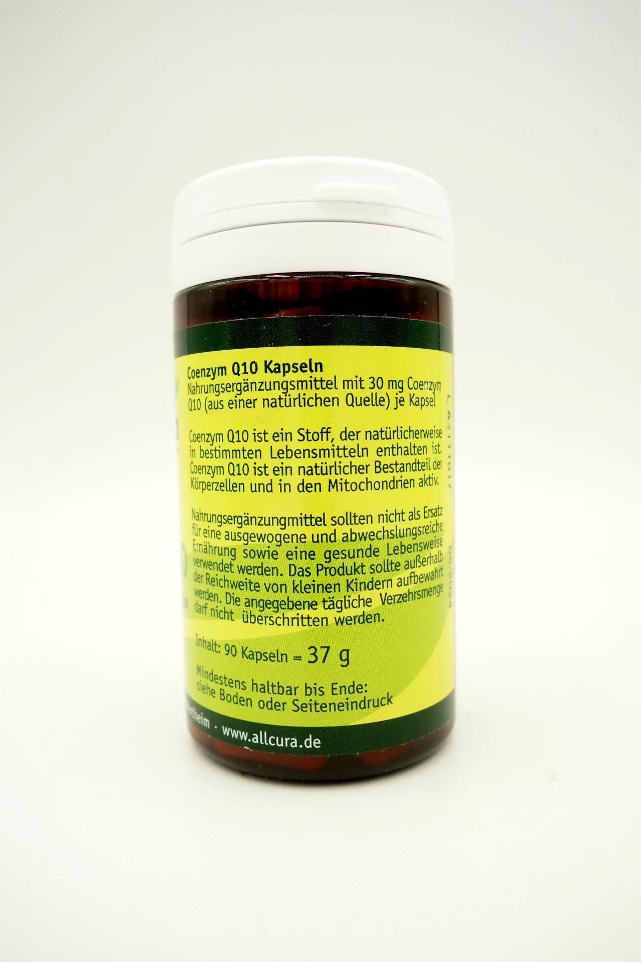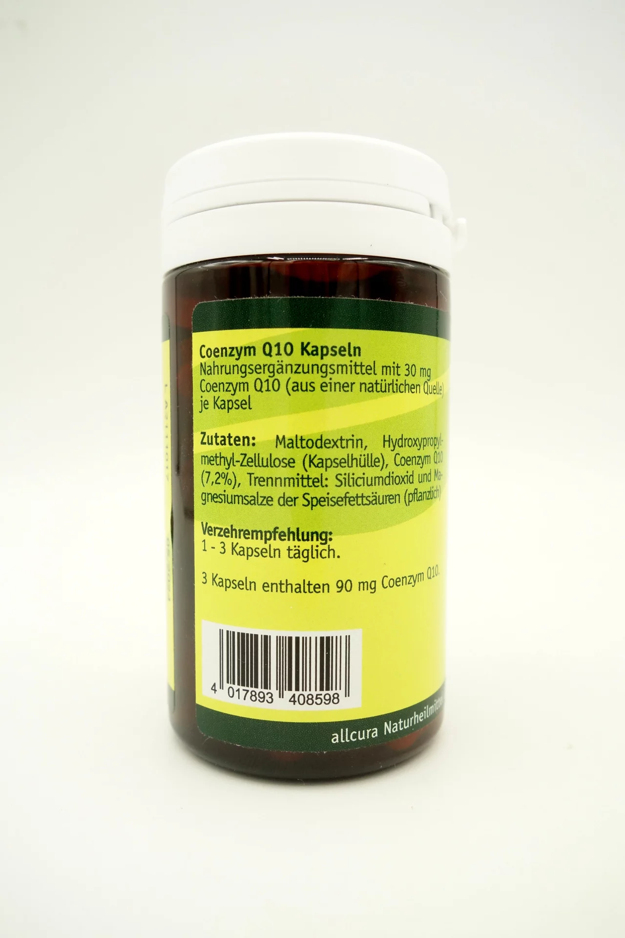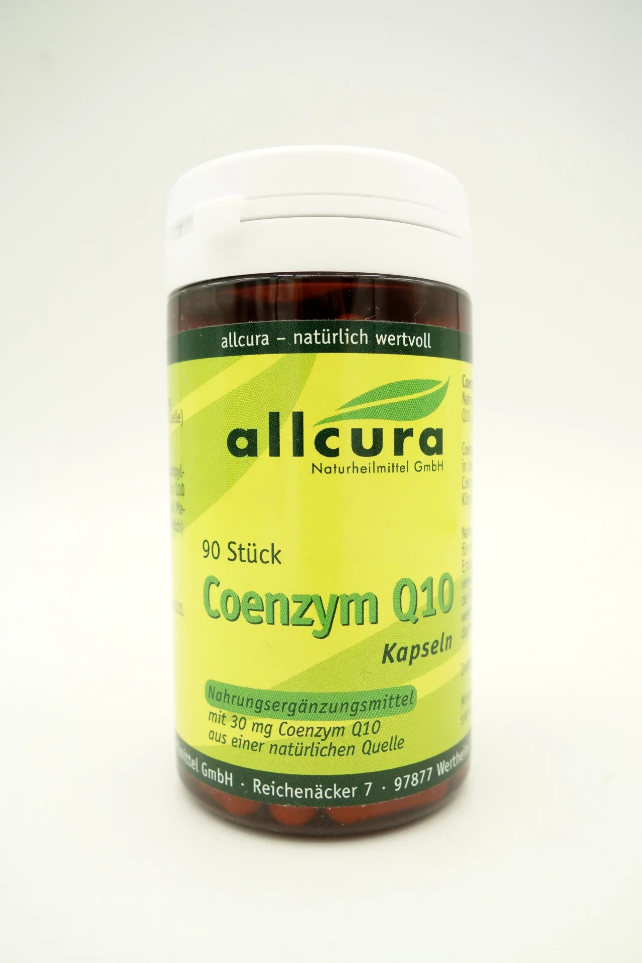 Allcura Coenzym Q10 Kapseln sind ein Nahrungsergänzungsmittel mit 30 mg Coenzym Q 10 pro Kapsel. Coenzym Q 10 ist ein vitaminähnlicher Stoff, der zu den Antioxidantien zählt.