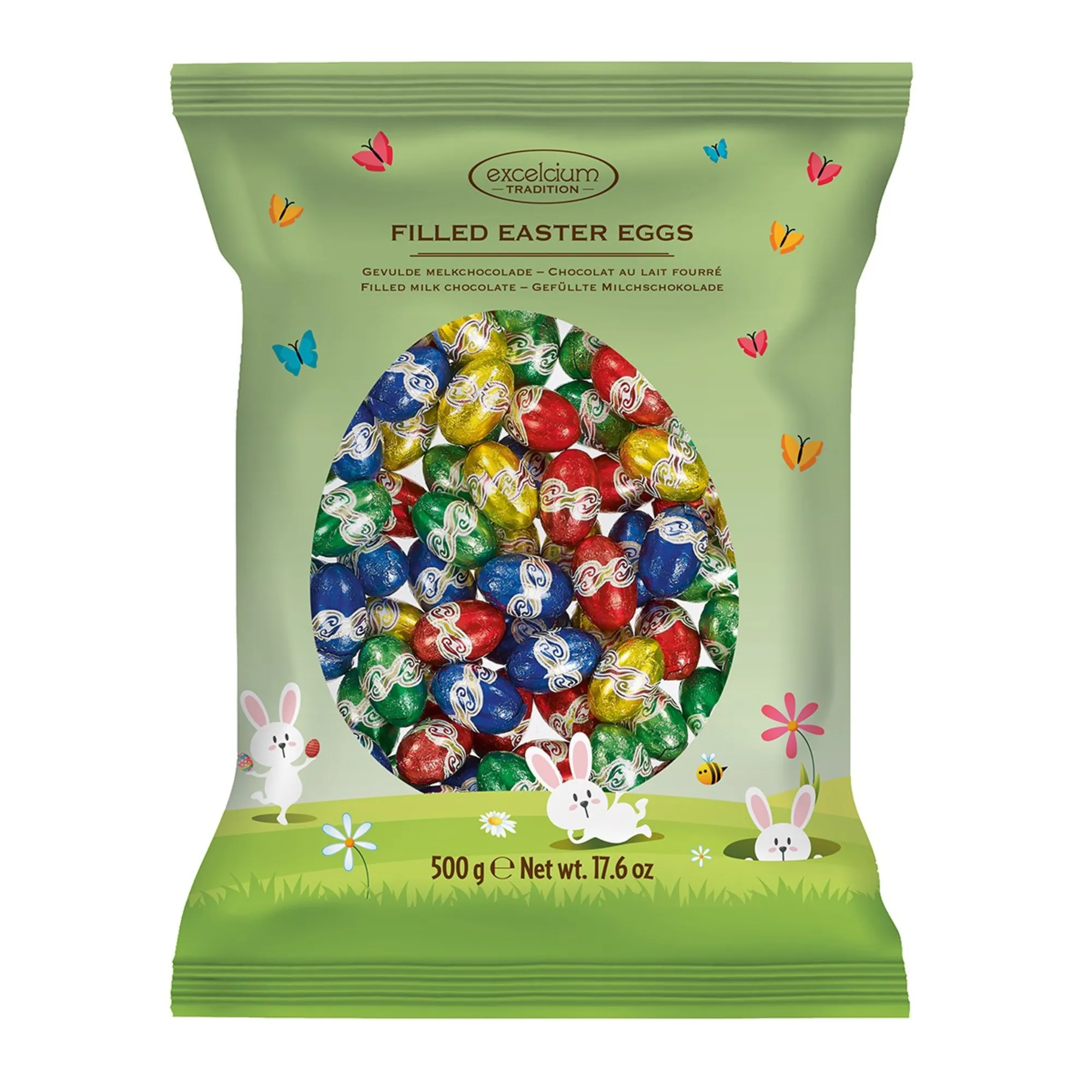 Excelcium Paaseitjes Gevuld Melk + Melk Hazelnootvulling (500gr) OP=OP