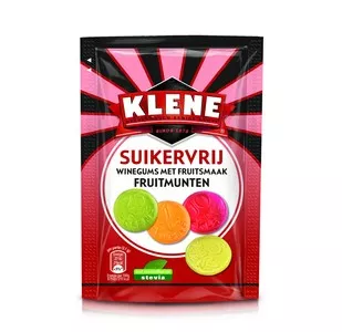 Klene suikervrij winegums met fruitsmaak fruitmunten zakje (12x 105gr)