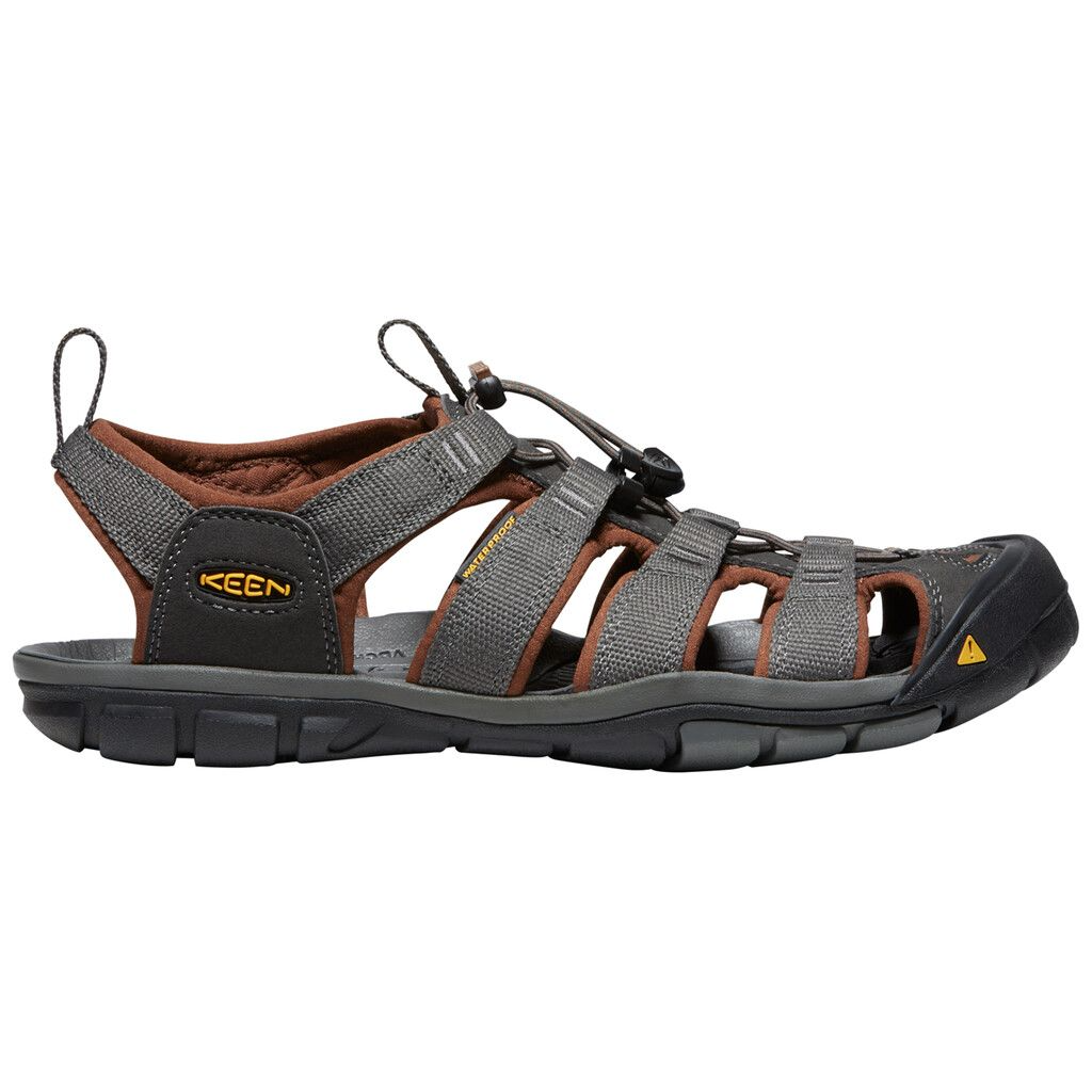 Die bewährte KEEN Passform und der Zehenschschutz nun noch besser, damit sich jeder Schritt natürlich anfühlt. Der Clearwater kombiniert Obermaterial aus waschbarem Polyestergewebe mit dem Aussehen einer traditionellen KEEN Sandale. Das Schnellzugschnürsystem sorgt für optimale Passform. Mehrdirektionale, flexible Rillen in der Sohle verbessern die Flexibilität und erhöhen die Trittsicherheit während des Laufens. Das integrierte Messerschnitt-Profil sorgt für Bodenhaftung auf glattem Untergrund.