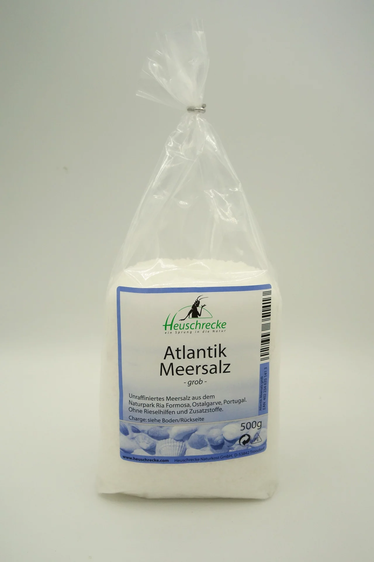 Heuschrecke unraffiniertes Atlantik-Meersalz stammt aus dem Naturpark Ria Formosa an der Ost-Algarve in Portugal und ist ohne Rieselhilfe und sonstige Zusätze hergestellt.