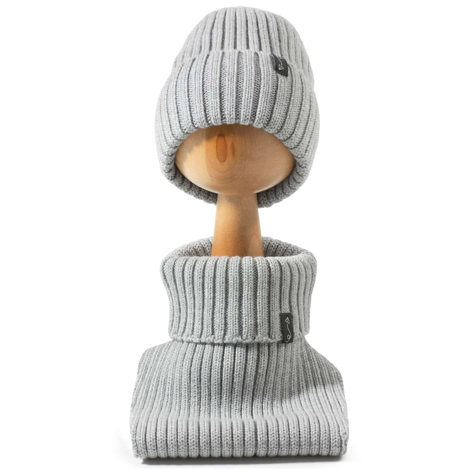 Der Rollkragen-Schal ist eine ideale Kombination mit einer Mütze von Merinowolle.