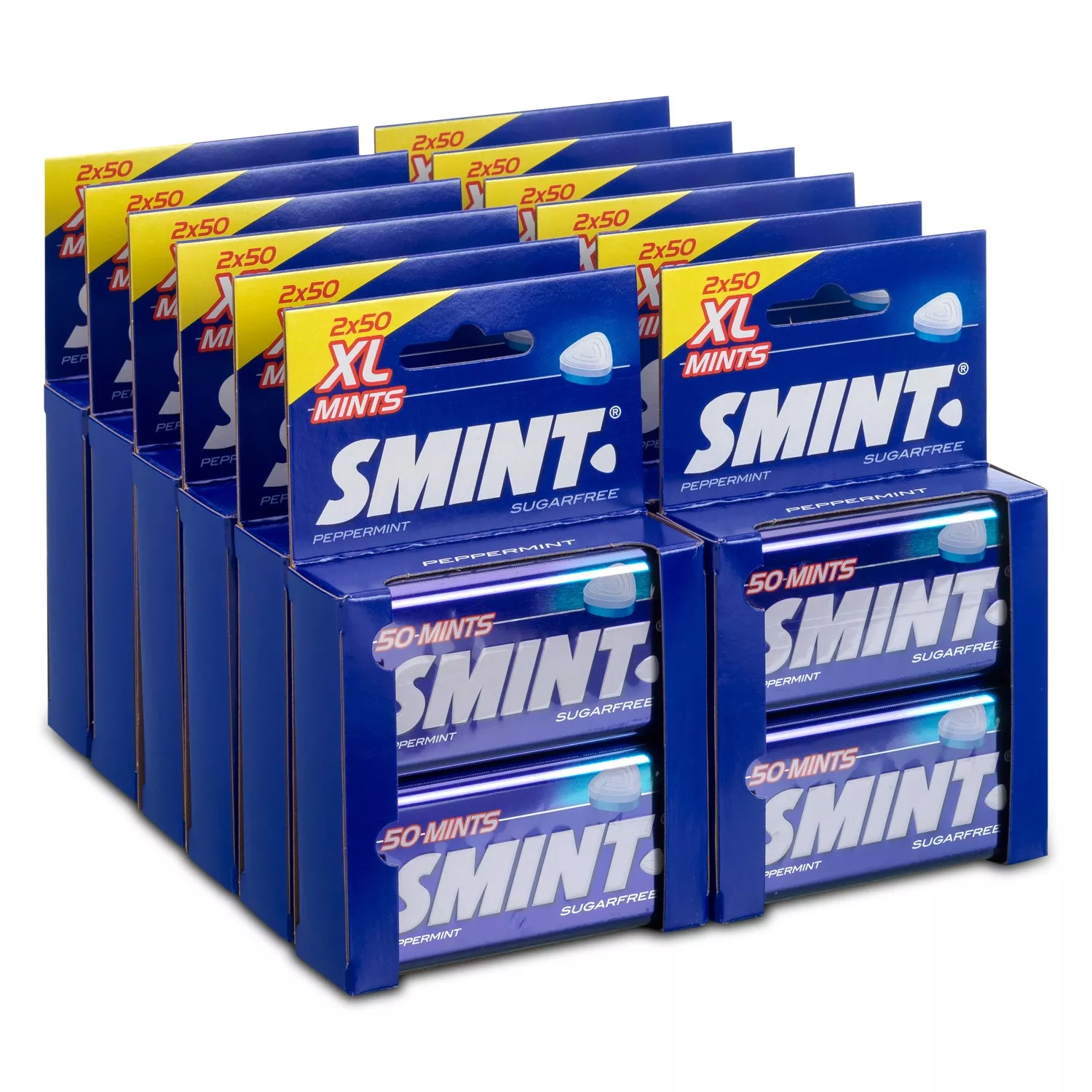 Smint XL Peppermint zijn verfrissende, suikervrije mintjes met een lekkere peppermuntsmaak. 2×50 mintjes verpakt in een handig blikje, ideaal voor onderweg. Een duopack, ideaal voor op voorraad.