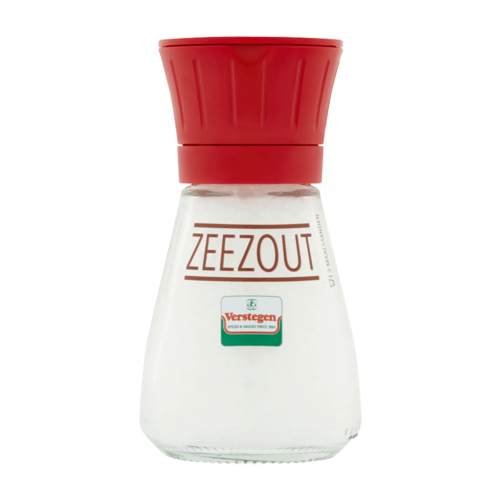 Deze molen van Verstegen heeft twee maalstanden. Voor een fijne maling moet de dop in de lage stand staan. Maar als de dop eenvoudig iets omhoog getrokken wordt, komt hij in een grovere maalstand te staan. Er zitten 6 stuks à 85 gram in een can.