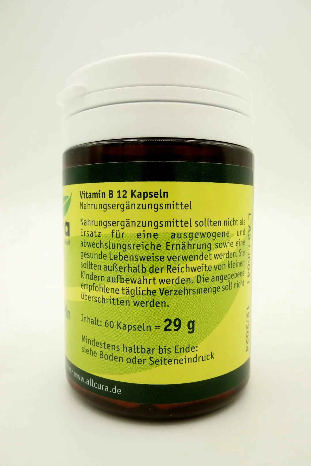 Allcura Vitamin B12 Kapseln vegan sind ein Nahrungsergänzungsmittel mit Methylcobalamin.